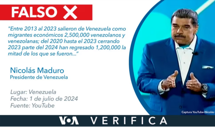 Por lo anterior, se considera falso que migraron solo 2,5 millones de venezolanos y venezolanas de 2013 a 2023 a otros países, y que hayan retornado casi la mitad, como dijo el presidente Maduro.