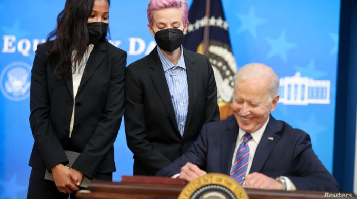Estados Unidos (VOA/) – El presidente Joe Biden aprovechó la celebración este miércoles en Estados Unidos del Día del Salario Equitativo para encabezar una ceremonia en honor de las mujeres en la Casa Blanca, un acto en el que, no obstante, expresó su deseo de que en un futuro no sea necesario conmemorar esta fecha.