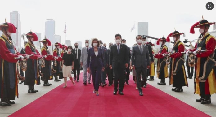 En Seúl, Pelosi se reunión con el presidente de la Asamblea Nacional surcoreana, Kim Jin Pyo, y con otros altos cargos del Parlamento el jueves. Tras un encuentro de una hora, la mandataria estadounidense habló sobre la alianza bilateral entre ambas naciones, forjada con sangre durante la Guerra de Corea de principios de los 50, y de los esfuerzos legislativos para respaldar el refuerzo de esos lazos, pero no mencionó directamente su estancia en Taiwán ni las protestas chinas.