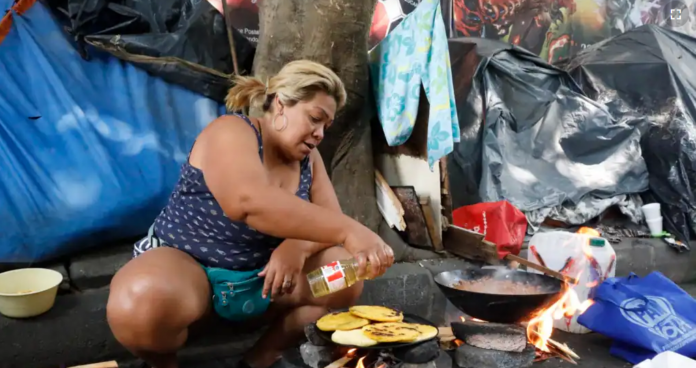 Saldeño era estilista en Venezuela, y como cientos de miles de venezolanos, salió de su país en búsqueda de mejores oportunidades. A pocos días de la elección presidencial del 2 de junio, cocinaba arepas, plátanos y otros alimentos en un fogón improvisado sobre una acera de la Colonia Juárez, en Ciudad de México.