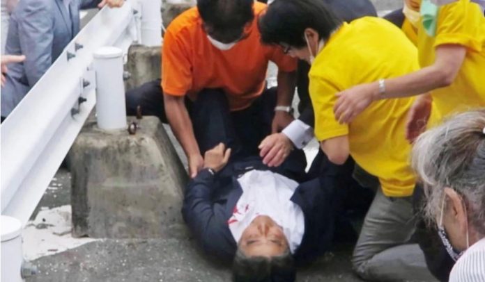 La emisora pública NHK transmitió un video dramático de Abe dando un discurso frente a una estación de tren en la ciudad occidental de Nara. Está de pie, vestido con un traje azul marino, levantando el puño, cuando se escuchan dos disparos. Luego, el video muestra a Abe colapsado en la calle, con los guardias de seguridad corriendo hacia él. Se sujeta el pecho, la camisa manchada de sangre.