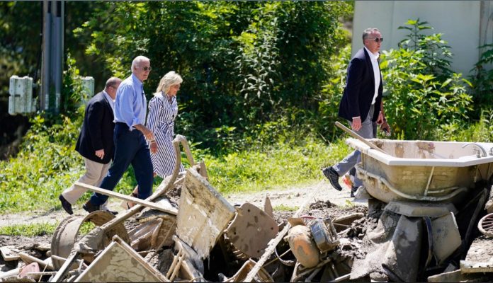 Más tarde en el día, los Biden planeaban inspeccionar otra localidad afectada por las inundaciones y reunirse con familias afectadas.