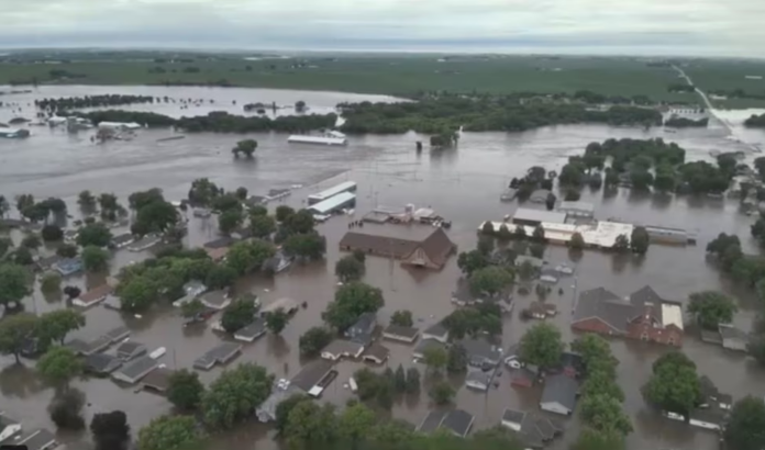La gobernadora Kim Reynolds declaró estado de desastre en 21 condados, incluido el de Sioux, que incluye a Rock Valley. En un video grabado por un dron y publicado por la policía local no se veían calles; sólo tejados y copas de los árboles asomándose por encima del agua.