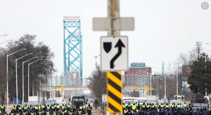 Miembros de la autodenominada Caravana por la Libertad también han bloqueado varios cruces fronterizos entre Estados Unidos y Canadá, aunque el más importante de ellos, el Puente Ambassador que conecta a Windsor, Ontario, con Detroit, fue reabierto el domingo después de que la policía arrestó a decenas de manifestantes y dispersó un bloqueo de casi una semana que había afectado a la producción automotriz en ambos lados de la frontera.