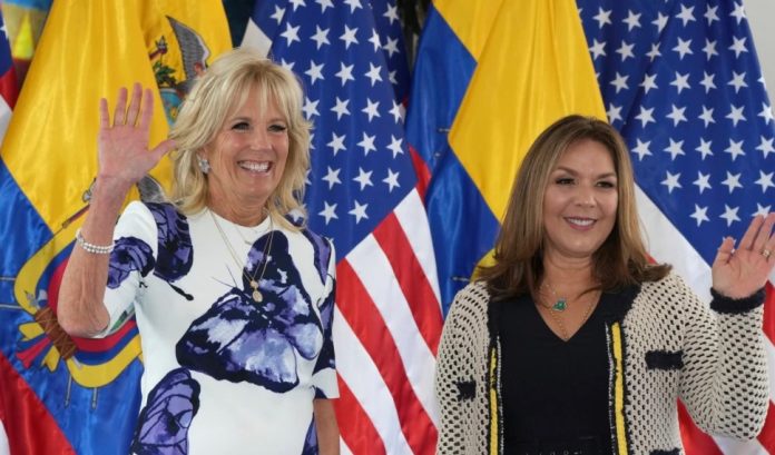 Washington, DC. (VOA) – Con una alfombra roja y arreglos florales recibieron las autoridades de Ecuador a la primera dama estadounidense, Jill Biden, en la mañana del jueves.