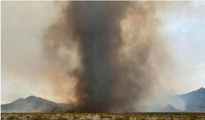 Estados Unidos (VOA) – Las cuadrillas de bomberos combatieron el fin de semana “remolinos de fuego” en la Reserva Nacional de Mojave, en California, cuando un enorme incendio forestal se adentraba en Nevada en medio de temperaturas peligrosamente altas y fuertes vientos.