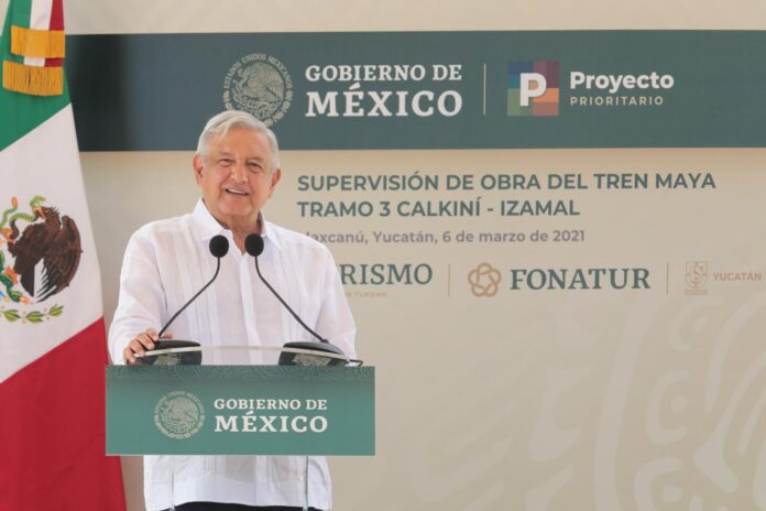 Ciudad de México. – Durante la supervisión de obra del tramo 3 del Tren Maya en el municipio de Maxcanú, el presidente Andrés Manuel López Obrador llamó a las empresas encargadas de su construcción a acelerar los trabajos para concluir el proyecto a finales de 2023.