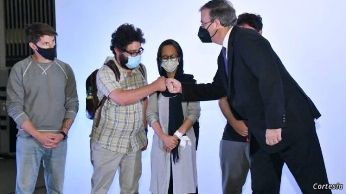 Por su parte el canciller mexicano Marcelo Ebrard, explicó en su cuenta de Twitter, donde también publicó un video, que los comunicadores llegaron con sus familias, por lo que eran “124 personas en total incluyendo menores de edad, luego de 20 horas de vuelo”.