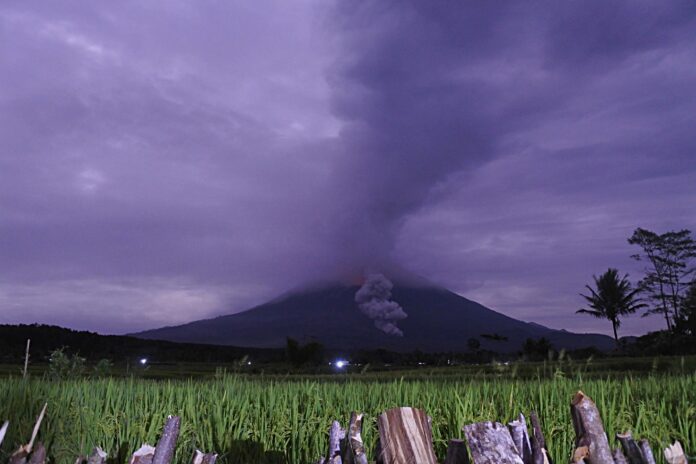 La ceniza caliente recorrió el martes por la mañana hasta 3.000 metros (9.800 pies) por las laderas del monte Semeru, provocando el pánico entre los vecinos, dijo Raditya Jati, vocero de la Agencia de Alivio de Desastres. Varias aldeas en las laderas del volcán quedaron cubiertas de ceniza y azufre.