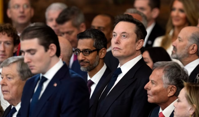 Durante la toma de posesión en la rotonda del Capitolio, Musk compartió una fila de asientos con otros magnates de la industria tecnológica, como el director general de Google, Sundar Pichai; y el CEO de Meta, Mark Zuckerberg. Todos estaban sentados detrás de la esposa del presidente entrante, Melania, y sus hijos, aunque el lugar de Musk estaba más cerca de Trump.