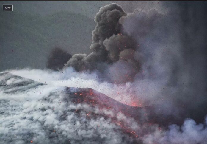 Nuevos ríos de lava surgieron la pasada madrugada desde el volcán de la isla de La Palma, en las Islas Canarias, debido al derrumbe de la cara norte del cono volcánico.
