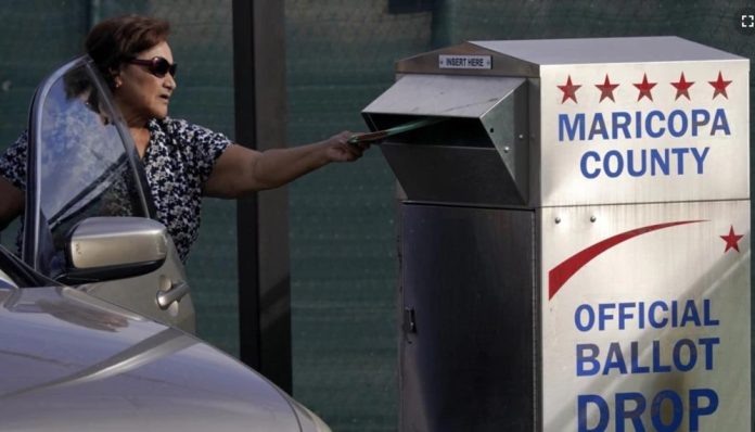 Los agentes del alguacil han estado brindando seguridad alrededor de los dos buzones al aire libre en el condado de Maricopa después de que un par de personas que portaban armas y vestían chalecos antibalas aparecieron en un buzón en el suburbio de Phoenix, Mesa. El otro buzón al aire libre del condado, abierto las 24 horas, se encuentra en el Centro de Elecciones y Tabulación del Condado de Maricopa en el centro de Phoenix, que ahora está rodeado por una cerca de alambre.