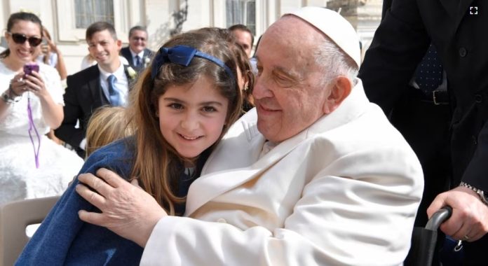 Antes de partir, Francisco tuvo un momento emotivo con una pareja de romanos cuya hija de 5 años de edad falleció el viernes por la noche en el hospital. Serena Subania, madre de Angelica, lloró mientras colocó su cabeza en el pecho del papa, quien la sostuvo y le dijo palabras de consuelo.