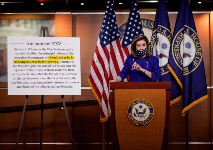 Washington, D.C. (VOA) – La presidenta de la Cámara de Representantes de Estados Unidos, Nancy Pelosi, presentó el viernes una propuesta que daría pie a la creación de una comisión para permitirle al Congreso intervenir en apego a la 25ta Enmienda de la Constitución.