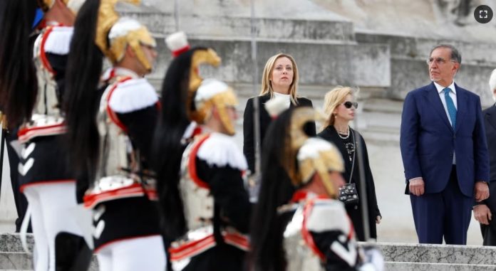 Seis meses después de asumir el cargo, muchos vieron como un punto de inflexión la presencia de Meloni este martes en el acto oficial en el Altar de la Patria en Roma junto al presidente Sergio Mattarella.