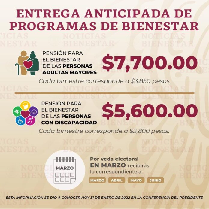 Anticipo será para que el Gobierno de México cumpla la Ley en el contexto de los procesos electorales que habrá en el país en 2022, explica Ariadna Montiel; con esta acción se garantiza el compromiso con los derechos constitucionales de las personas adultas mayores y con, dice Juan Carlos Loera.