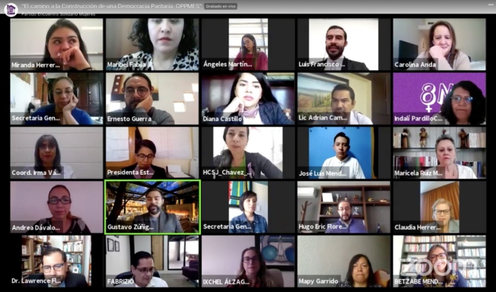 En el evento, que fue transmitido a través de la plataforma Zoom, estuvieron presentes: la secretaria general, la Mtra. Alejandrina Moreno Romero; la presidenta nacional de la Red de Mujeres, la Mtra. Nadia Martínez Dupotex; la coordinadora nacional de Finanzas del PES, la Lic. Edith Carolina Anda González; la regidora de San Juan de los Lagos, Jalisco, la Dra. Laura Angélica Chávez Contreras; la Coordinadora Nacional de la Red de Mujeres Lila, la Lic. Ma. de los Ángeles Martínez Loeza y la Académica de la UNAM, la Mtra. Betzabé Mendoza Paz.