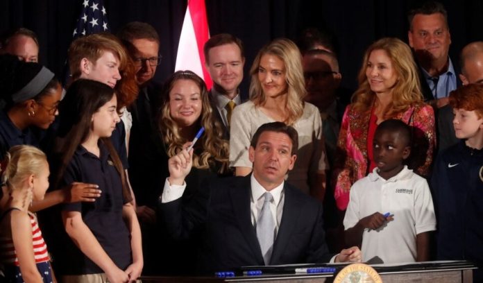 Estados Unidos (VOA) – El gobernador de Florida, Ron DeSantis, eligió una escuela cristiana como escenario para firmar leyes el miércoles que prohíben cuidados de afirmación de género para menores, restringen el uso de pronombres en las escuelas y obligan a las personas a usar el baño correspondiente a su sexo en algunos casos.