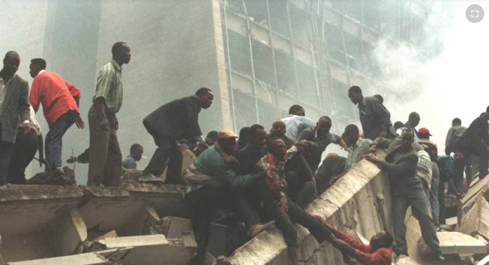 Ese día un camión-bomba dirigido por Al Qaeda exlpotó en las cercanías de la embajada estadounidense en Nairobi, capital de Kenia, lo que trajo la muerte de 218 trabajadores y vecinos del lgar, así como más de 4.000 heridos.