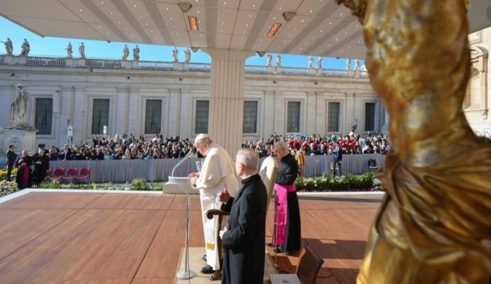 La encíclica “abrió horizontes en los que se podía hablar de paz, fomentar paz”, dijo Francisco a los miles de fieles reunidos en la plaza. El documento del 11 de abril de 1963, señaló, era una “auténtica bendición, como una serena apertura entre nubes oscuras”.