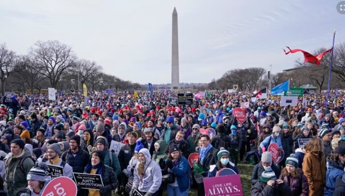 Esta es la primera vez que se lleva a cabo el evento anual contra el aborto luego de que la Corte Suprema anuló el año pasado Roe v. Wade, un caso que reconoció el derecho constitucional al aborto.