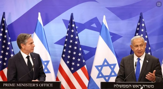 Parado junto al gobernante israelí, Blinken destacó la importancia que tiene para su gobierno el final del largo conflicto mediante una solución de dos Estados.