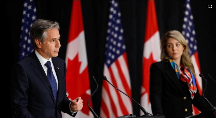 Blinken dio su total apoyo también a una declaración de Joly y otras 11 ministras de relaciones exteriores emitida esta semana sobre “el régimen represivo de Irán”.
