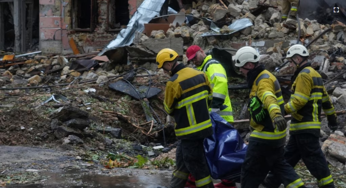 Los ataques rusos destruyeron varios pisos de un edificio de tres plantas y provocaron un incendio que afectó a una superficie de 450 metros cuadrados y estuvo ardiendo varias horas.