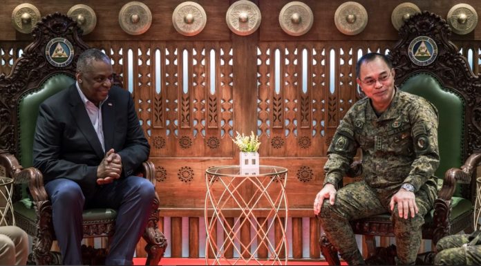 “Me parece que el futuro de Filipinas, y de hecho de Asia Pacífico, siempre tendrá que involucrar a Estados Unidos simplemente porque esas alianzas son muy fuertes y están tan arraigadas históricamente en nuestra psique común”, dijo Marcos mientras dándole la bienvenida a Austin al palacio presidencial.