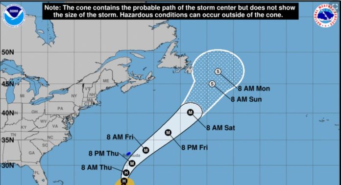 Earl se mueve hacia el norte a 8 millas por hora, y se espera que pase por el sureste de Bermudas el jueves, donde los vientos comenzarán a sentirse con fuerza de tormenta tropical a partir del jueves y el azote durará hasta el viernes, indicó el NHC en su último parte. Bermuda se encuentra bajo aviso de tormenta tropical.