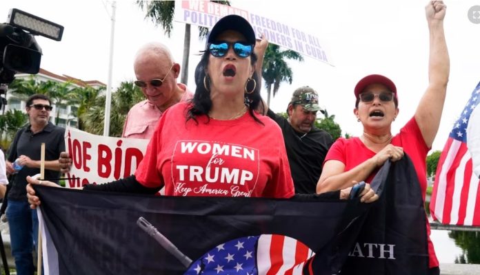 Simpatizantes de Trump han expresado su descontento, en ocasiones con el uso de retórica violenta. Algunos se han reunido en las afueras de un resort en el área del Doral propiedad de Trump, al oeste de Miami, donde el expresidente deberá pasar la noche antes de su cita en el juzgado.