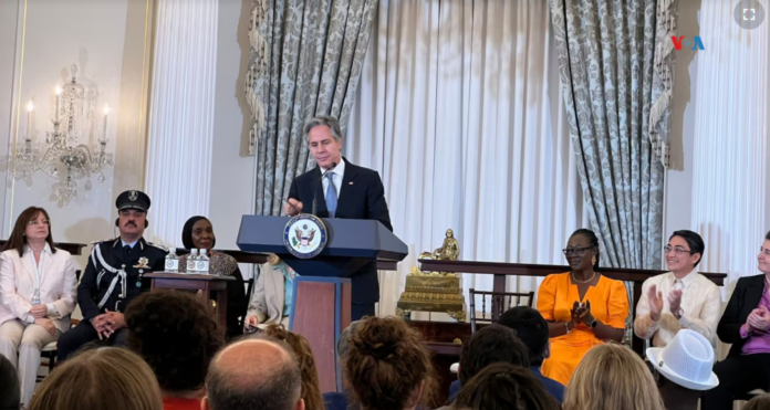 Marcela Martínez, de Bolivia, la cubana Maria Welau y la española Rosa Cendón asistieron al evento en el Departamento de Estado, donde Blinken resaltó sus esfuerzos como clave para lograr un “cambio rápido” ante los “obstáculos presentes”.