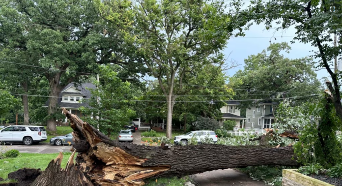 “Hay numerosos informes de líneas eléctricas caídas en toda la ciudad como resultado de la tormenta de esta tarde”, publicó en línea el departamento de policía de Joliet, Illinois, el lunes por la noche. “Muchas carreteras están total o parcialmente bloqueadas por árboles o ramas de árboles”. La ciudad está a unas 35 millas (56 kilómetros) al suroeste de Chicago.