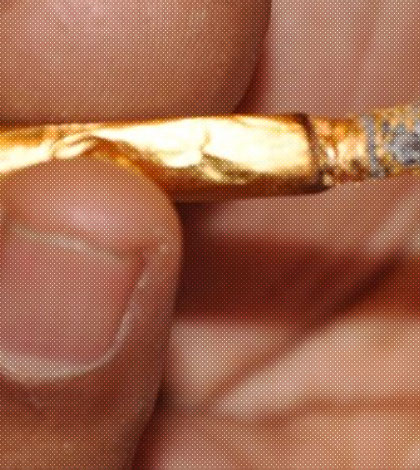 Quizás este podría ser el sueño de los narcotraficantes de las películas estadounidenses que ostentan grandes cadenas y anillos de oros. Un “cigarrito” de oro haciendo juego.