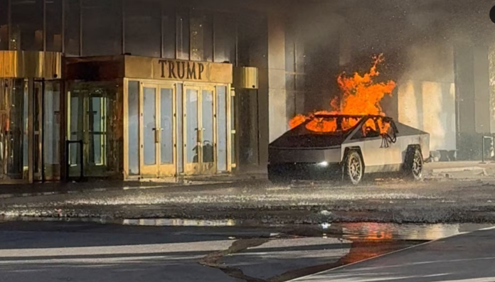 Estados Unidos (VOA) – Una camioneta Tesla Cybertruck con fuegos artificiales y bombonas de gas estalló frente al hotel del presidente electo de EEUU, Donald Trump, en Las Vegas el miércoles, matando a una persona e hiriendo al menos a otras siete, dijeron las autoridades.