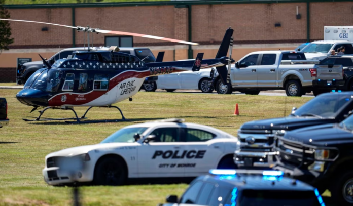 Un video de helicóptero de WSB-TV mostró decenas de vehículos policiales y de emergencia rodeando la escuela en el condado de Barrow, unos 80 kilómetros al noreste de Atlanta.