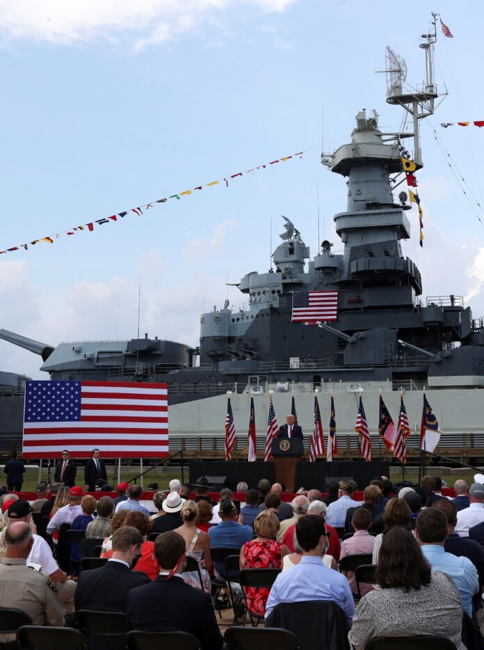 El mandatario se acercó a Wilmington para, frente al histórico destructor USS North Carolina, anunciar que ha designado a esta localidad como la primera en ser nombrada patrimonio histórico de la Segunda Guerra Mundial.