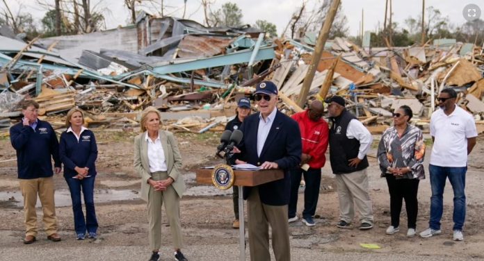 Estados Unidos (VOA) – El presidente de Estados Unidos, Joe Biden, visitó el viernes la comunidad de Rolling Fork, en el Estado de Mississippi, para brindar apoyo al lugar, donde un tornado dejó la semana pasada un paisaje arrasado con casas derrumbes y cortes de los principales servicios.