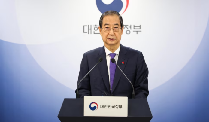 El primer ministro Han ha sido presidente en funciones desde que el 14 de diciembre por el 3 de diciembre, y sus poderes presidenciales fueron suspendidos.