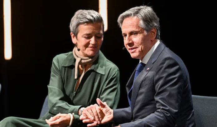 El código voluntario reduciría la brecha mientras la UE, de 27 naciones miembros, trabaja en unas normas sin precedentes que entrarían en vigor hasta dentro de unos tres años, comentó la vicepresidenta de la Comisión Europea, Margrethe Vestager, durante una reunión del Concejo de Comercio y Tecnología de la UE y Estados Unidos, que está dirigido de manera conjunta por funcionarios estadounidenses y europeos.