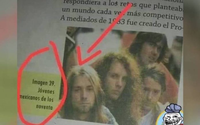 Ciudad Juárez, Chih. (ADN/Staff) – La Secretaría de Educación Pública (SEP) se ha visto envuelta en una nueva controversia en las redes sociales debido a una imagen que apareció en uno de sus libros de texto. En la ilustración, los integrantes de Nirvana fueron presentados como “jóvenes mexicanos de los noventa” en el libro de Historia de México II, lo que generó un revuelo en línea.