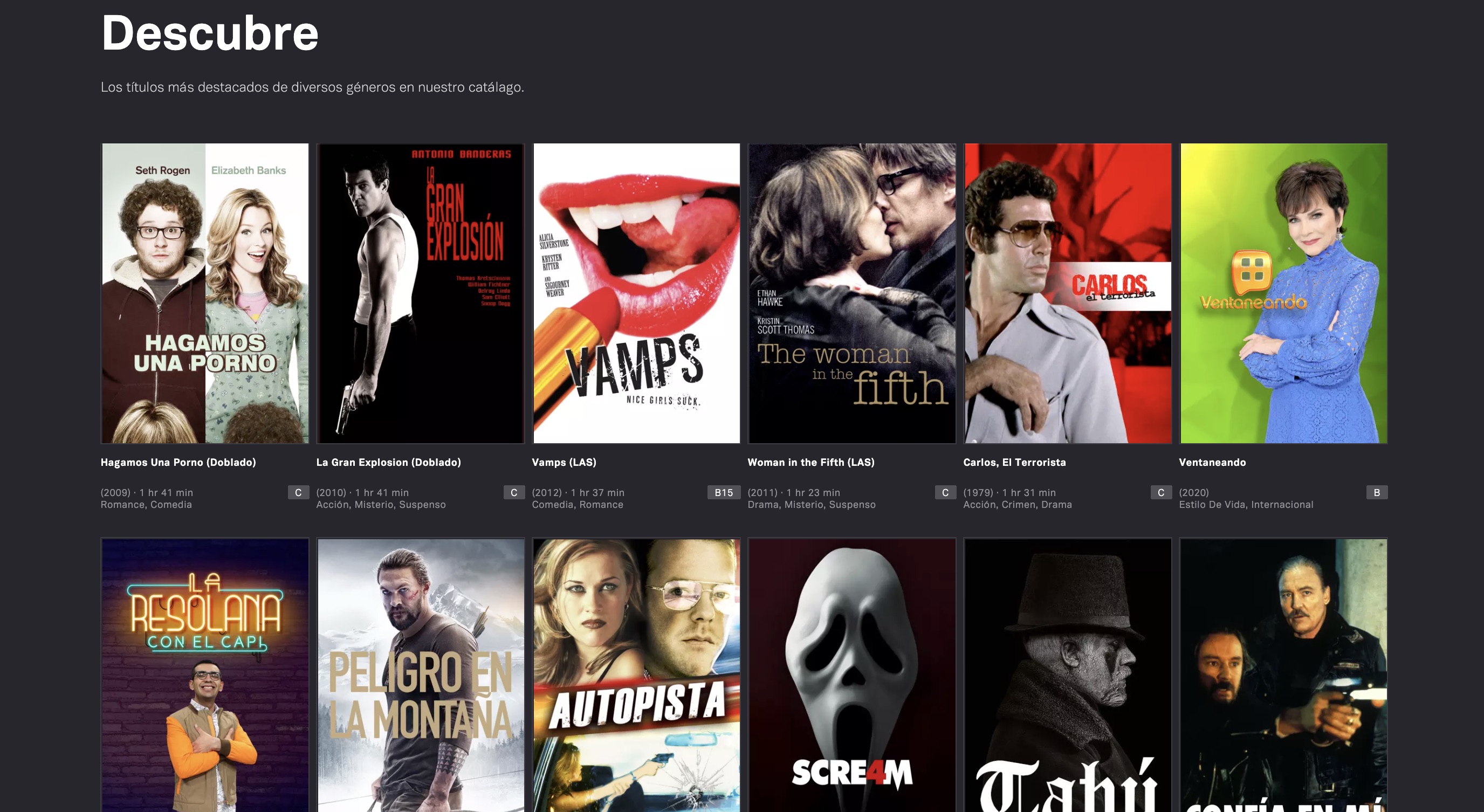 El servicio AVOD (Ad Supported Video-On-Demand) ofrece una extensa colección de contenidos de Estados Unidos y América Latina doblados y subtitulados al español. Tubi cuenta con una selección especial de contenido que incluye los géneros más populares, clásicos de Hollywood y títulos de entretenimiento familiar, así como lo mejor de TV Azteca, que incluye: Exatlón México, MasterChef, Lo que la Gente Cuenta, Montecristo, Mientras Haya Vida, Bellezas Indomables y Amor en Custodia.
