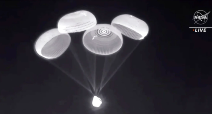 La nave se había separado de la estación espacial alrededor de ocho horas antes y su regreso a la Tierra fue transmitido en vivo por internet por la agencia espacial estadounidense NASA.