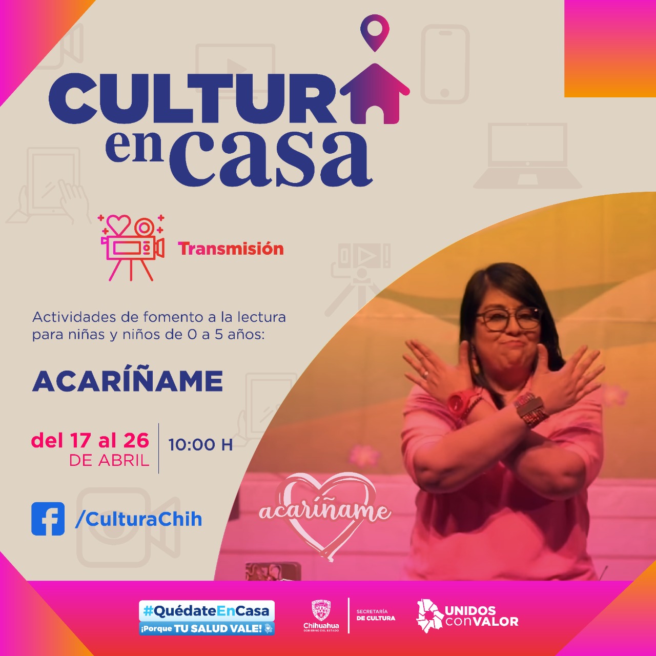 Chihuahua, Chih. – La Subsecretaría de Cultura Zona Norte, a través del programa #CulturaEnCasa, invita a disfrutar de la serie de presentaciones para la primera infancia titulada Acaríñame, con la narradora oral Lizbeth Gallegos.