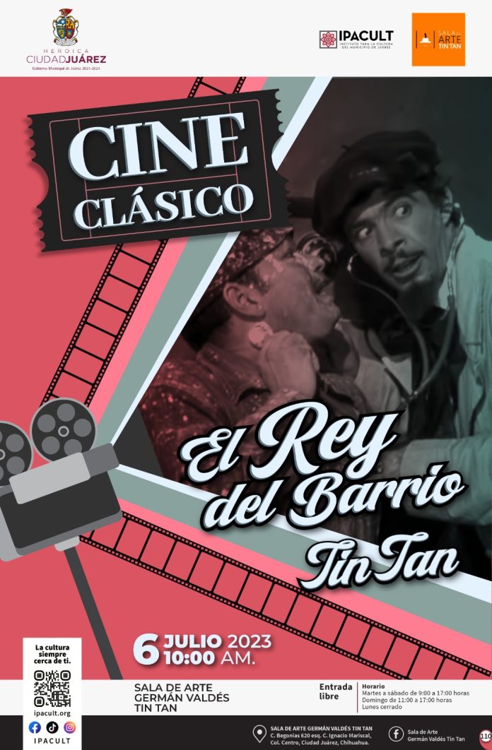 Ciudad Juárez, Chih .- Durante el ciclo, se proyectarán cuatro películas del llamado Rey del Barrio, en la sala de arte Germán Valdez Tin Tan, ubicada en la calle Begonias número 620 en la colonia Bellavista, a partir de las 10:00 de la mañana.