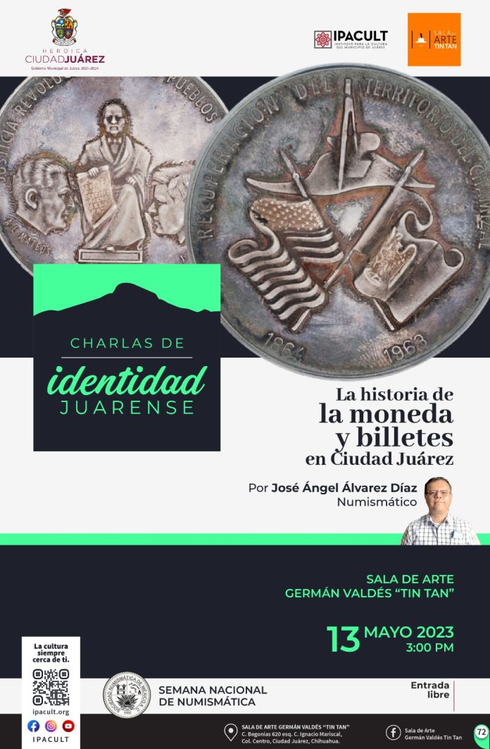 Ciudad Juárez, Chih .- Como tema principal se abordará “La historia de la moneda y billetes en Ciudad Juárez”, con el ponente José Ángel Álvarez Díaz, la cual tendrá una duración de dos horas, dentro de las que se llevará a cabo una charla de apertura, así como la conferencia interactiva con los asistentes.
