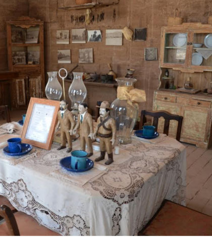 Es una construcción de 4 X 10 metros con mobiliario, enseres, monedas, documentos y fotografías de la época.