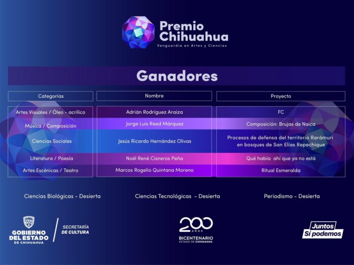 Sin embargo, las categorías de Ciencias Biológicas, Ciencias Tecnológicas y Periodismo fueron declaradas desiertas según el dictamen emitido por el comité y la Ley que crea el Premio Chihuahua, la cual está publicada en el Periódico Oficial del Estado.