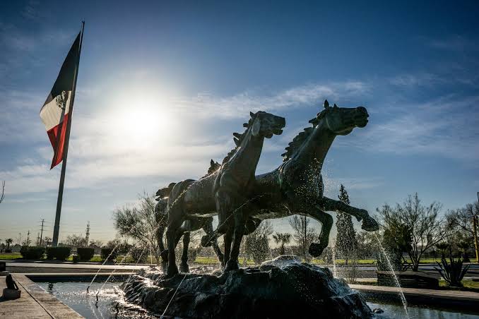 Este imponente monumento compuesto por las figuras de tres caballos a galope que representan el temple de la gente del norte, data del año 2001, y es obra de la reconocida escultora mexicana Georgina “Gogy” Farías.