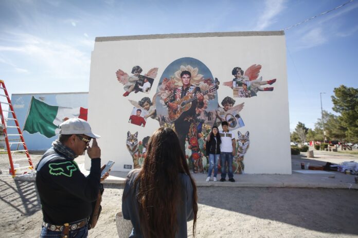 Ciudad Juárez, Chih .- Inicialmente, la creación del mural estaba programada para el sábado 15 de febrero; sin embargo, debido a las fuertes ráfagas de viento, la actividad se reprogramó para el domingo 16.